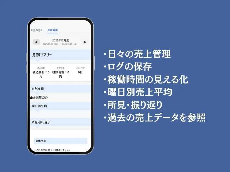 売上は毎日日報として提出され、事務に依頼すれば集計も可能です。