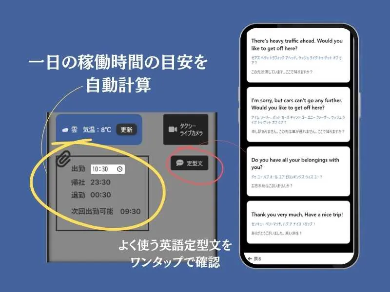 そしてタクシー運行中に「すぐアクセスできると便利」な機能をまとめること。